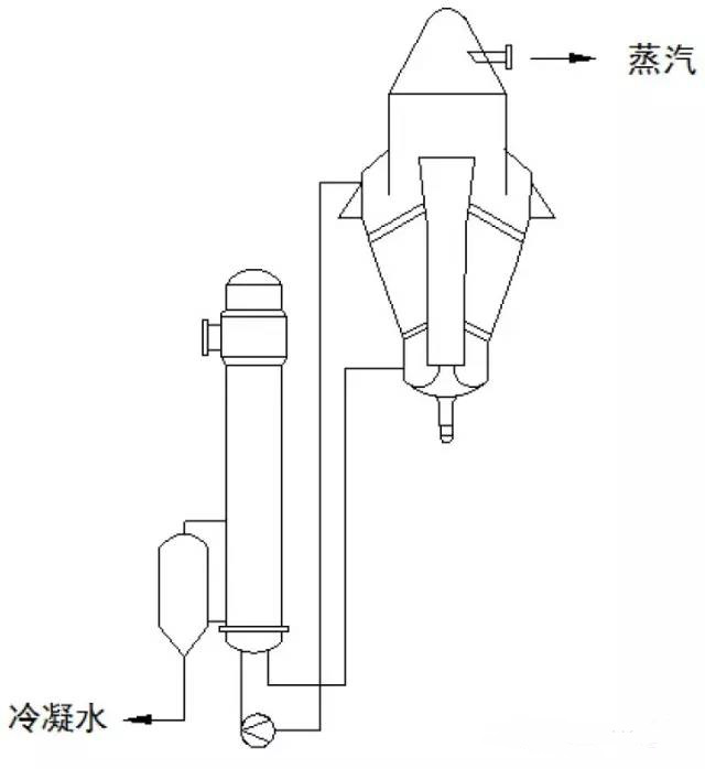 濃縮液落入下管箱,二次蒸汽進(jìn)入氣液分離器。在氣液分離器中二次蒸汽夾帶的液體飛沫被去除,純凈的二次蒸發(fā)從分離器中輸送到壓縮機(jī)。壓縮機(jī)把二次蒸汽壓縮后作為加熱蒸汽輸送到換熱器殼程用于蒸發(fā)器熱源。實(shí)現(xiàn)連續(xù)蒸發(fā)過(guò)程。